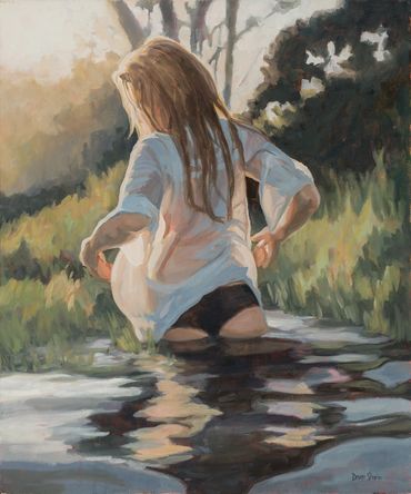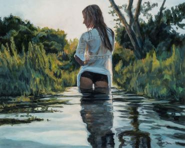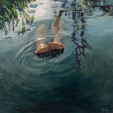 Cleansing, purifying, washing away and reflecting, movement and light are all elements to consider when looking at this work. The light itself becomes its own entity in the way it touches the body and dances on the water.